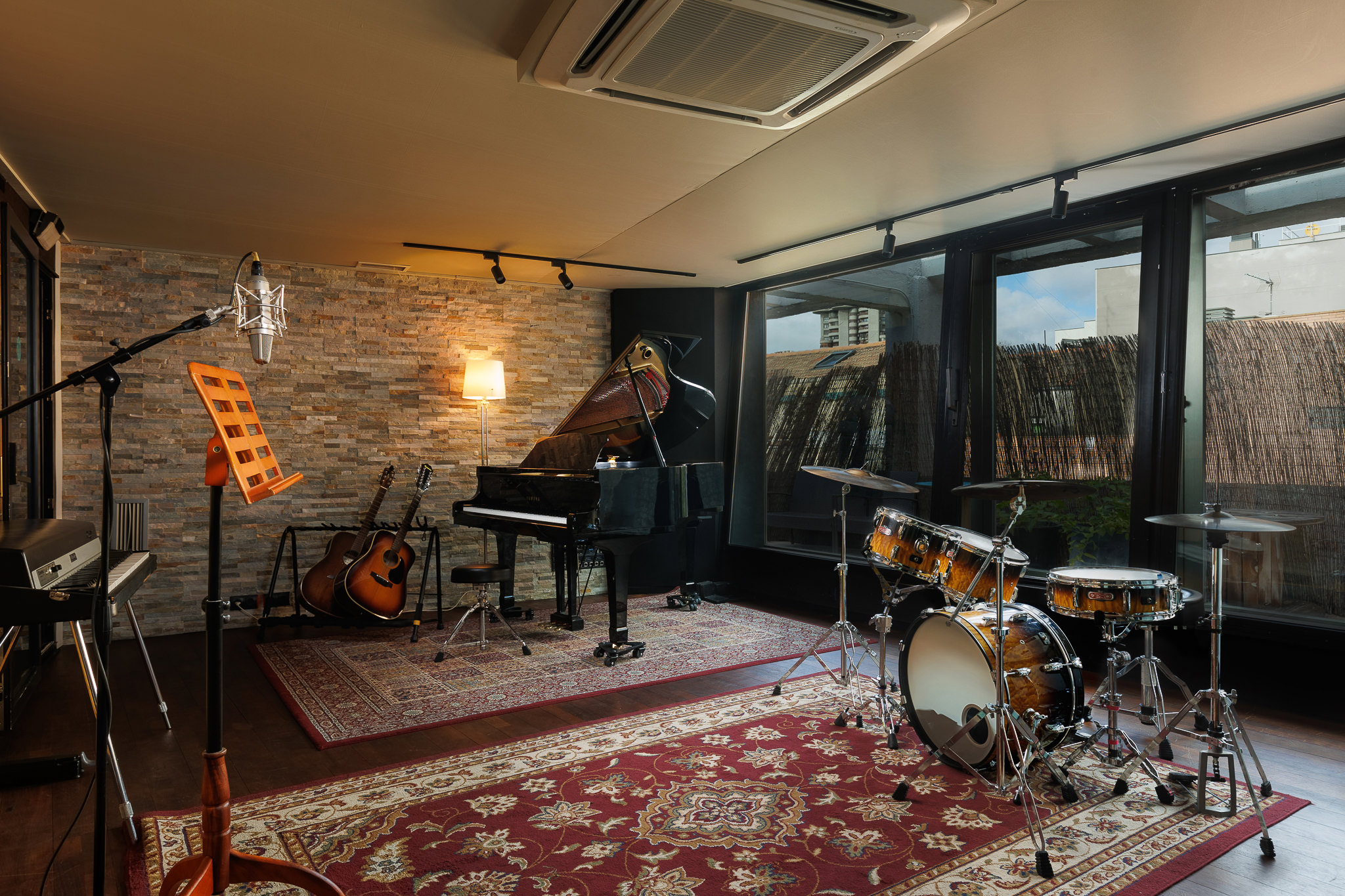 Espacio versátil que puede ser usado desde sala de grabacion hasta espacio creativo para producir, ensayar y componer.
